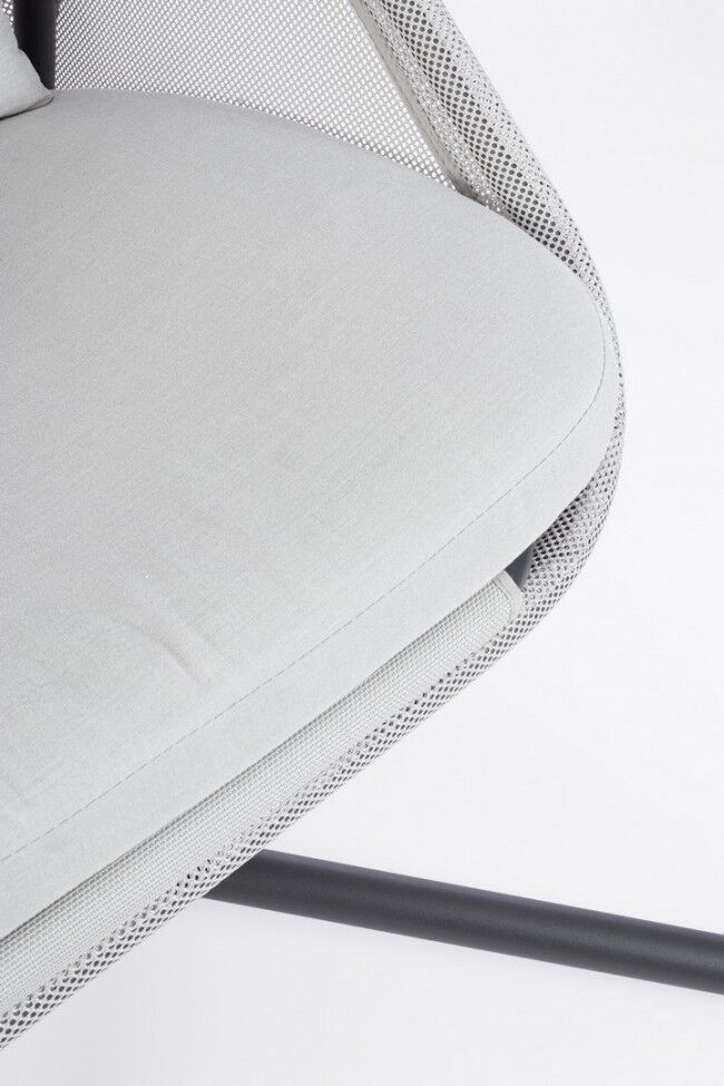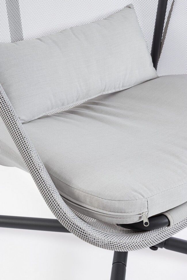 Sklopiva viseća fotelja ALGAR elegantan je i udoban dodatak za svaki vanjski prostor. Okvir je izrađen od čelika obrađenog za vanjsku upotrebu fosfatizacijom i premazanog poliesterskim prahom, što osigurava trajnost i otpornost na vremenske uvjete. Struktura je prekrivena mrežastom tkaninom (100% poliester) koja osigurava prozračnost i udobnost. Jastuci su odvojivi i izrađeni od spun poliestera, što omogućuje jednostavno održavanje. Fotelju je potrebno sastaviti. Važno: nije dostupna za prodaju u Njemačkoj, Austriji, Švicarskoj, Nizozemskoj i Luksemburgu.