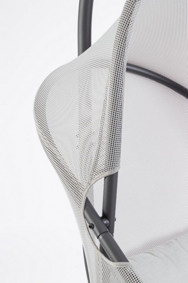Sklopiva viseća fotelja ALGAR s čeličnim okvirom obrađenim fosfatizacijom i premazanim poliesterskim prahom. Struktura prekrivena mrežastom tkaninom (100% poliester), jastuci odvojivi. Dimenzije: 125x103x194 cm. Nije dostupna za prodaju u Njemačkoj, Austriji, Švicarskoj, Nizozemskoj i Luksemburgu.