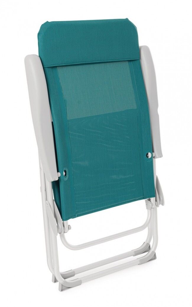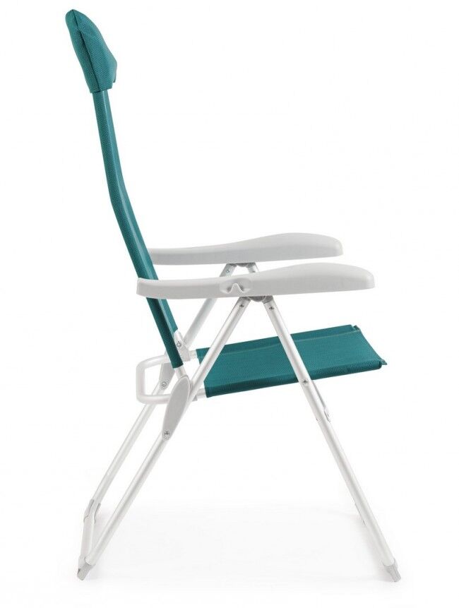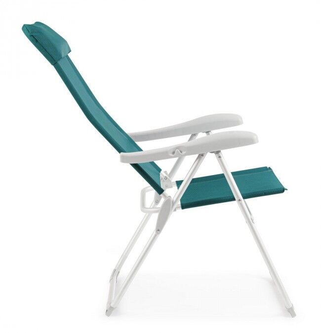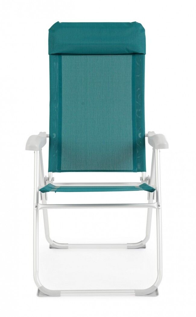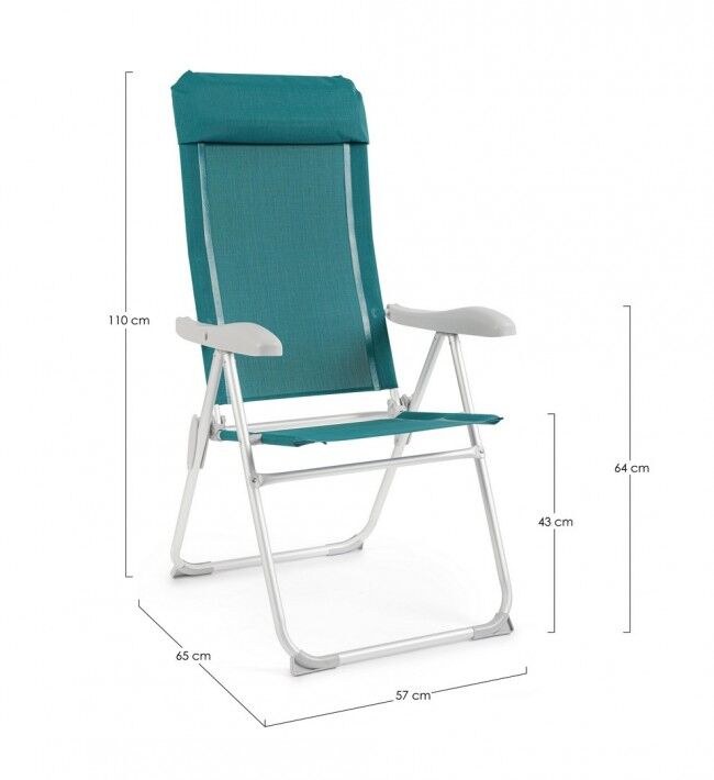 Sklopiva vrtna fotelja CAYO s visokim naslonom u Ottaniu je lagana aluminijska stolica s tekstilom otporna na vremenske uvjete. Elegantna plavo-zelena nijansa, podesivi jastuk. Dimenzije: 57x65x110 cm. Težina: 3,8 kg. Minimalna narudžba: 4 komada.