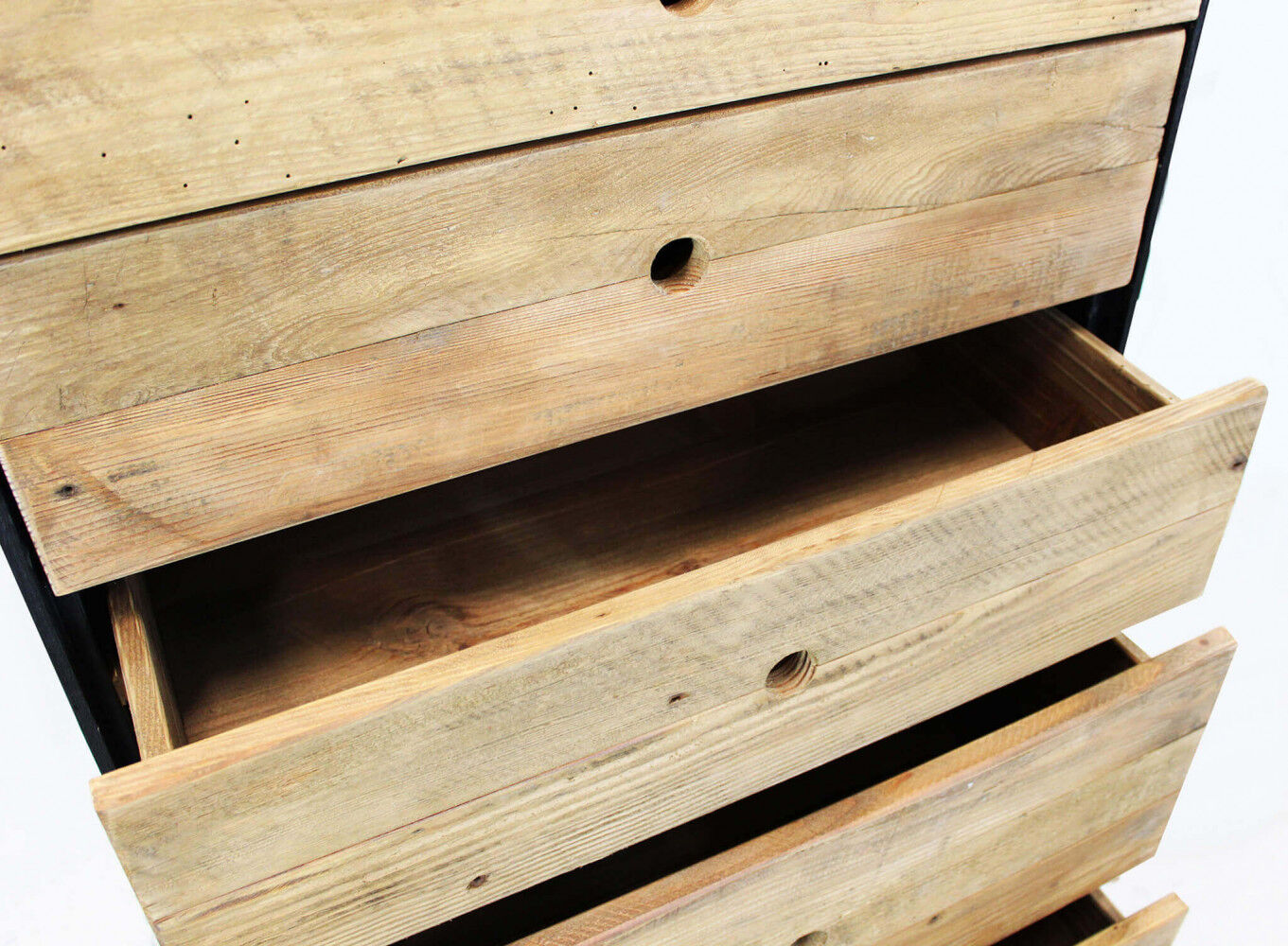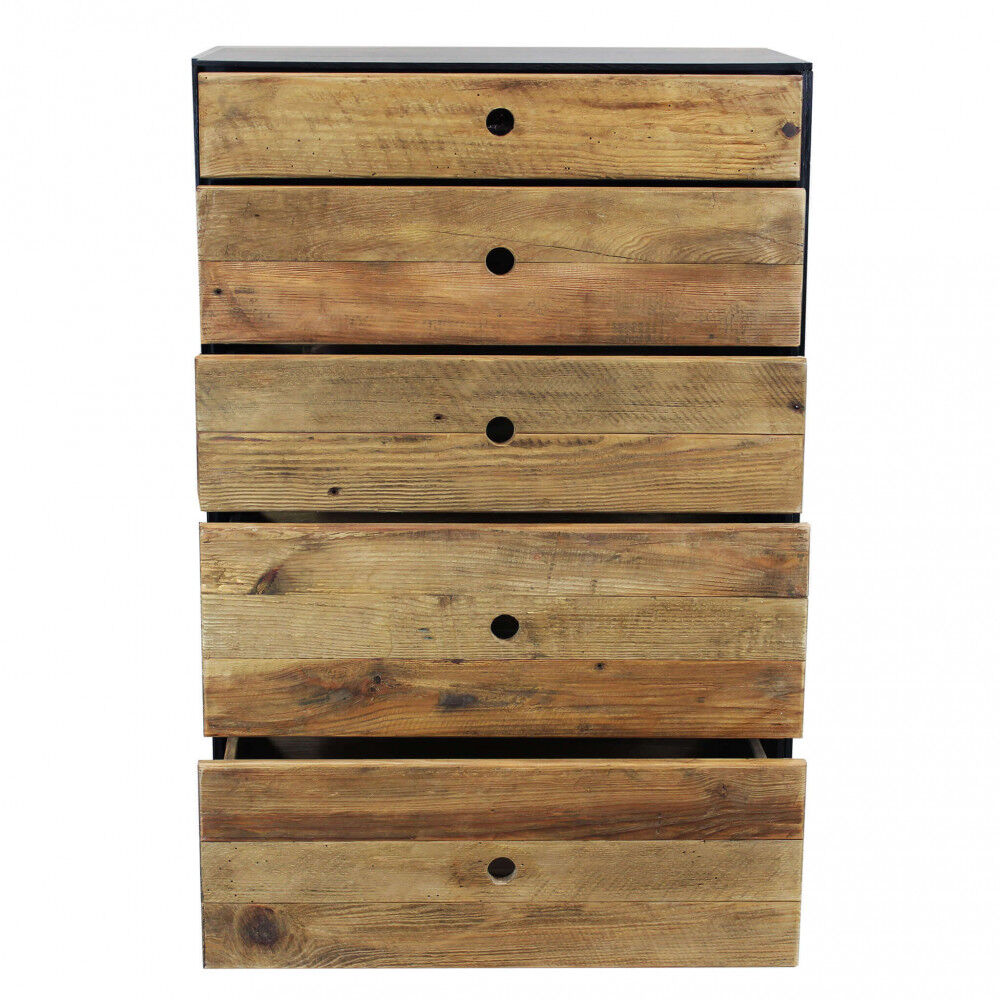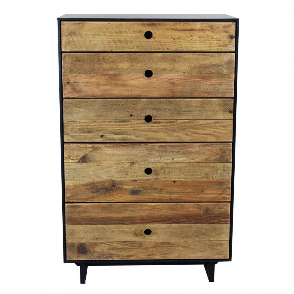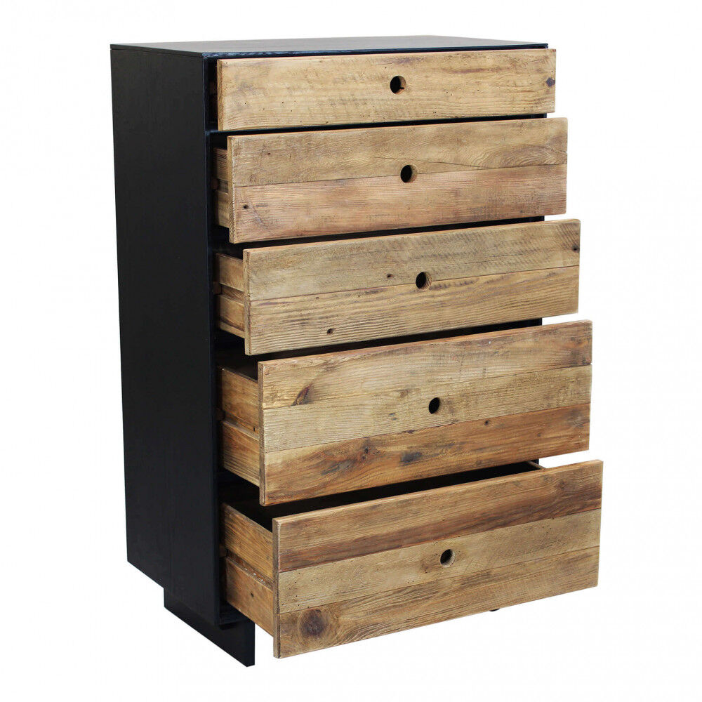 Komoda s 5 ladica u prirodnom i crnom recikliranom borovom drvu Dimenzije: 70 x 40 x 110 h cm