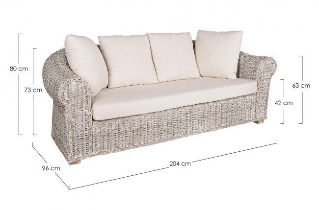 Sofa trosjed model CC COBA elegantan je komad namještaja koji spaja estetiku prirodnih materijala i udobnost modernog dizajna. Evo detalja o proizvodu:- **Struktura od ratana:** Sofa je izrađena od visokokvalitetnog ratana koji joj daje snagu i prirodan izgled. - **Kubu tkanje:** Površina sofe je tkana u stilu kubu koji uključuje ručni rad i doprinosi unikatnosti namještaja. - **Završna obrada na bazi nitroceluloze:** Ova završna površina pruža dodatnu zaštitu i dugotrajnu izdržljivost sofe, zadržavajući prirodan izgled ratana. - **Noge od drveta manga:** Noge su izrađene od drva manga iz održivih izvora, poznatog po svojoj izdržljivosti i prekrasnim prirodnim uzorcima. - **Uklonjivi jastuci:** Uključeni su jastuci koji su izrađeni od tkanine za unutarnju upotrebu, u ovom slučaju lana, što pruža dodatnu udobnost i jednostavno čišćenje. - **Preporuke za korištenje:** Savjetujemo da sofu ne izlažete izravnoj sunčevoj svjetlosti i vremenskim utjecajima jer to može oštetiti materijal i skratiti vijek trajanja proizvoda. - **Pakiranje bez kartona:** Proizvod je pakiran bez upotrebe kartona, što ukazuje na ekološki prihvatljiv pristup pakiranju. Trosjed CC COBA idealan je izbor za sve koji traže elegantan, održiv i udoban komad namještaja za svoj dom.