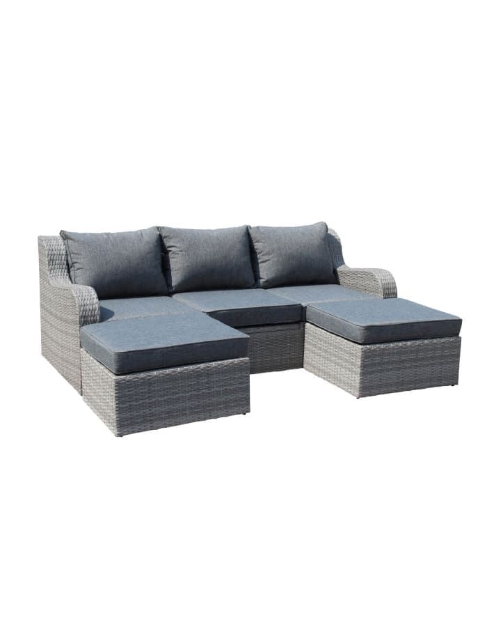 Otkrijte udobnost i funkcionalnost vrtnog namještaja s Perú vrtnim setom. Izrađen od visokokvalitetnih materijala kao što je aluminijski okvir protkan užetom od umjetnog tehno-ratana u sivoj boji, ovaj set je otporan na sve vremenske uvjete, što omogućuje dugotrajnu upotrebu na otvorenom. Sastoji se od kauča, dva taburea i praktičnog stolića na izvlačenje koji se lako uklapa ispod jastuka za sjedenje, a ovaj set spaja udobnost, praktičnost i elegantan dizajn. Udobni jastuci debljine 10 cm mogu se skinuti i prati, što olakšava održavanje. Vrtni namještaj Perú idealan je izbor za stvaranje ugodnog i funkcionalnog prostora za opuštanje na vašoj terasi ili balkonu.