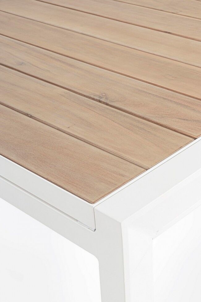 Opis proizvoda: AL.BELMAR STOL 160-240X100 BIJELI YK11 Karakteristike proizvoda: - **Materijal konstrukcije**: Aluminijska struktura obložena prahom (poliesterski premaz), koja osigurava visoku otpornost na vremenske uvjete i koroziju. - **Površina (ploča)**: Ploča stola izrađena je od aluminijskih letvica s efektom zrna drveta, što joj daje estetski i prirodan izgled drva uz jednostavno održavanje metala. - **Noge**: Stol ima podesive noge, što omogućuje podešavanje visine i osigurava stabilnost na različitim površinama. - **Vijci**: Vijci od nehrđajućeg čelika koriste se za dodatnu izdržljivost i otpornost na hrđu. - **Sastavljanje**: Noge su uključene posebno za sastavljanje, što olakšava transport i skladištenje prije sastavljanja. Karakteristike ovog stola spajaju funkcionalnost, izdržljivost i estetiku, što ga čini idealnim za unutarnju i vanjsku upotrebu.