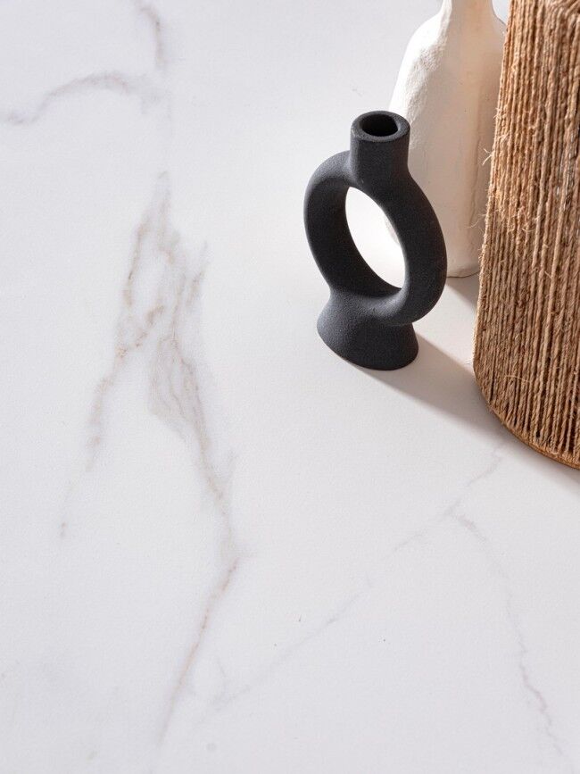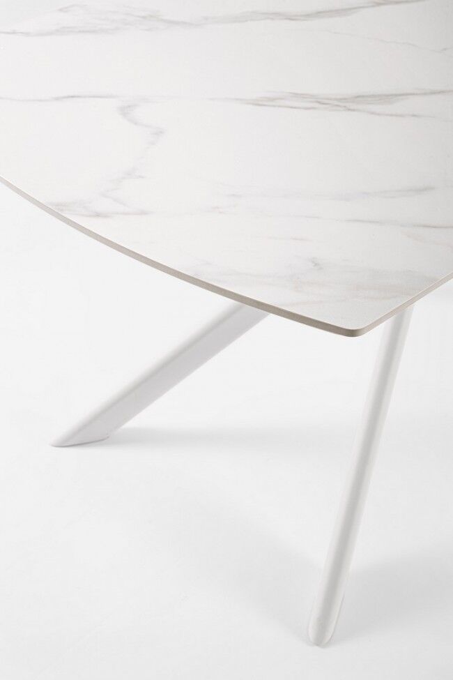 - Ploča stola : porculanska keramika s efektom bijelog mat mramora, koja je izuzetno izdržljiva, otporna na ogrebotine, toplinu i mrlje.