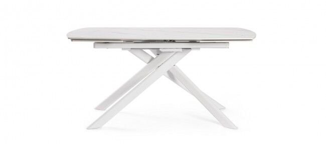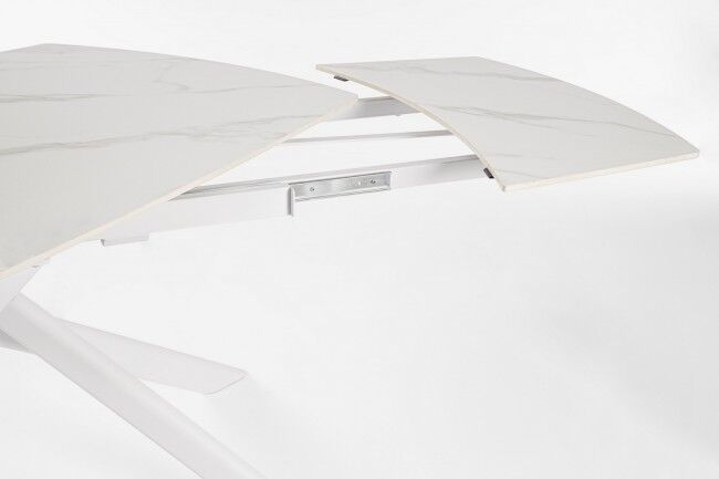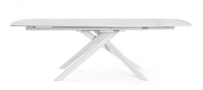 Stol na razvlačenje JOAKIM 160-240x90 u bijeloj boji, čelične konstrukcije i porculanske ploče s efektom bijelog mramora. Moderan stol na razvlačenje , pogodan za 8-10 osoba. Idealan za unutarnje i vanjske prostore. Marka Bizzotto.