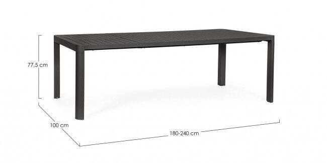 Stol na razvlačenje KIPLIN 180-240X100 antracit CX23 s aluminijskom strukturom i teleskopskim mehanizmom. Za 8-10 osoba, dimenzije 180/240x100x77,5 cm. Plastificirano s inox vijcima, idealno za moderan prostor.