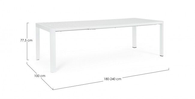 Stol na razvlačenje KIPLIN 180-240x100 bijeli CX21 je prostran i moderan stol dizajniran za svestranu upotrebu. Izrađen je od izdržljivog aluminija presvučenog poliesterskim prahom koji osigurava otpornost na vremenske utjecaje i dug vijek trajanja. Stol ima teleskopski sustav razvlačenja koji omogućuje produljenje duljine stola od 180 cm do 240 cm, što ga čini pogodnim za 8 do 10 osoba.