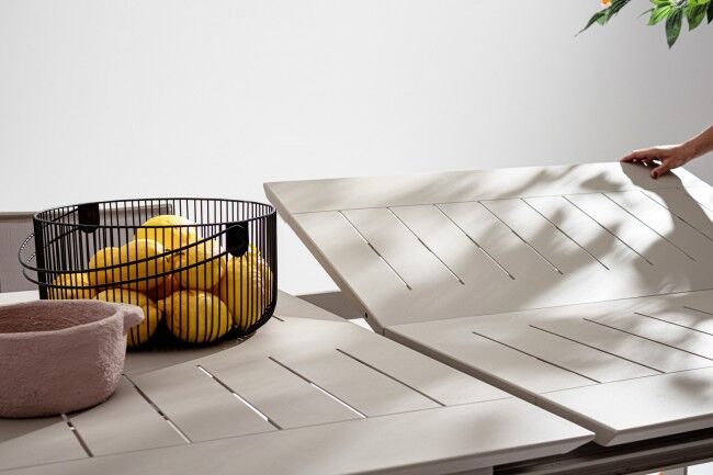 Stol na razvlačenje KONNOR 160-240X100 RASTIN je svestran i elegantan stol dizajniran za vanjsku upotrebu i podesiv prema broju gostiju. Izrađen od izdržljivog aluminija , praškasto obložen poliesterskom bojom, što osigurava otpornost na vremenske utjecaje i dug vijek trajanja. Stol je opremljen teleskopskim mehanizmom , koji omogućuje jednostavno podešavanje dužine od 160 cm do 240 cm, što omogućuje smještaj za 6 do 10 osoba. Dvije noge stola imaju ugrađene kotačiće , što olakšava pomicanje stola po potrebi. Vijci od nehrđajućeg čelika pružaju dodatnu izdržljivost i otpornost na koroziju. Stol je potrebno sastaviti, uključujući i montažu nogu.