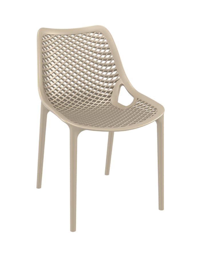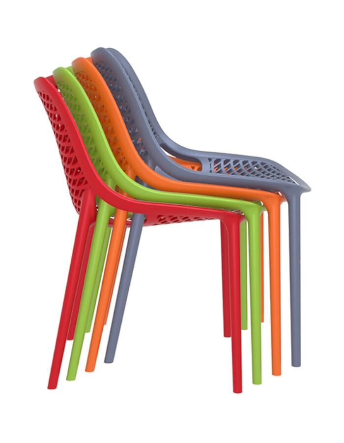 Stolica Air izrađena je od polipropilenskog monobloka, ojačana stakloplastikom, dobivena najnovijom generacijom tehnološkog postupka, masivno obojena. Stolica Air pogodna je za terase, balkone, vrtove i plaže. Veliki izbor boja.