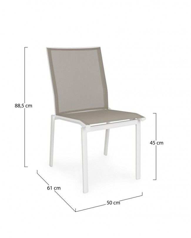 - Sjedište i naslon: Presvučeni tekstilom Textilene Phifer 1x1, poznatim po svojoj izdržljivosti i otpornosti na vremenske uvjete.