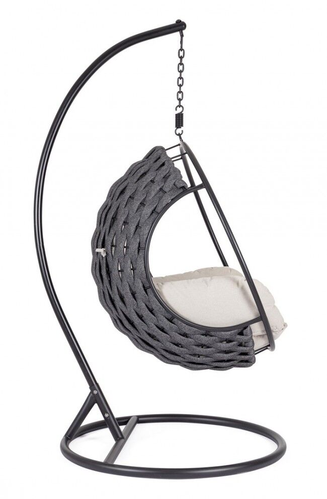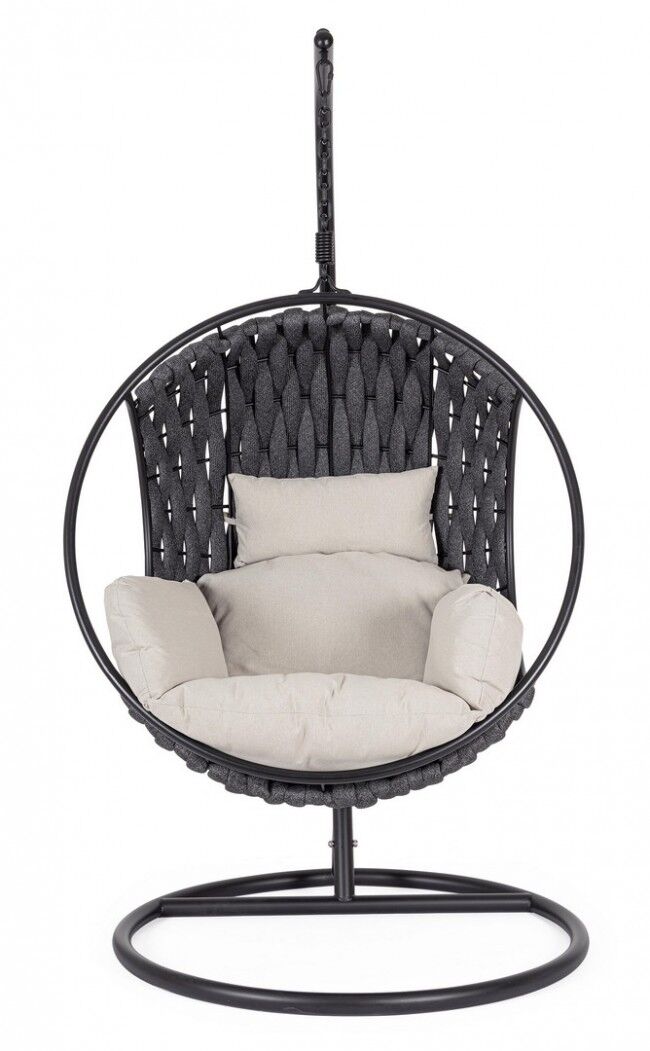 Viseća fotelja GALAPAGOS crna s metalnim okvirom i jastucima u bež boji. Praktična i elegantna za korištenje na otvorenom i u zatvorenom.