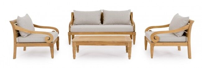 Vrtn sofa dvosjed KARUBA natural sa jastucima - FSC tikovina