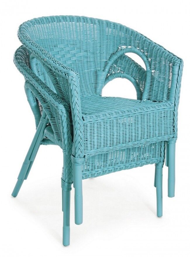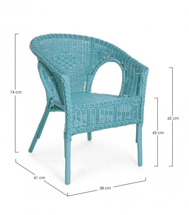 Vrtna fotelja ALLISS plava je elegantna i praktična slagajuća fotelja od prirodnog ratana plave nijanse. Idealno za restorane, vrtove i terase.