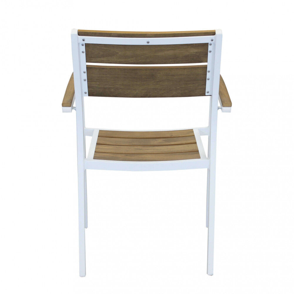 Vrtna stolica CAYMAN AT-804129-BIAN je elegantna i izdržljiva stolica sa strukturom od bijelog aluminija te sjedištem i naslonom od Polywooda u boji tikovine. Dimenzije: 56x58x85 cm. Savršen za korištenje u vrtu, terasi ili balkonu, ovaj stolac savršeno se slaže sa Cayman stolovima, stvarajući skladan i atraktivan vanjski set.