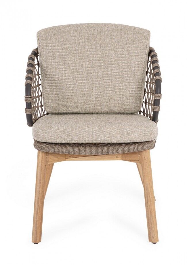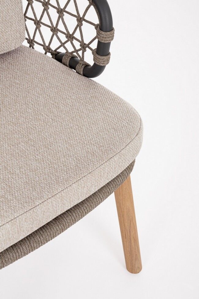 EULARIA vrtna fotelja u boji prirodnog pijeska s nogama od tikovine i ručno pletenim naslonima. Elegantan i izdržljiv izbor za luksuzne vanjske prostore – savršen u kombinaciji s ostalim proizvodima iz kolekcije EULARIA.