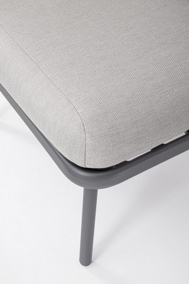 - Aluminijska (poliester) presvučena prahom konstrukcija : Čvrsta aluminijska konstrukcija presvučena prahom pruža otpornost na hrđu, koroziju i vremenske uvjete. Antracit boja daje fotelji moderan izgled i čini je idealnom za razne vanjske prostore.