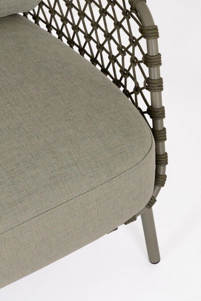 Vrtna fotelja IVISSA zelena s jastucima donosi spoj prirodnog izgleda i maksimalne udobnosti za vanjske prostore. Zahvaljujući zelenim jastucima i elegantnom prepletanju, savršeno se uklapa u svaku terasu, vrt ili hotelski ambijent.