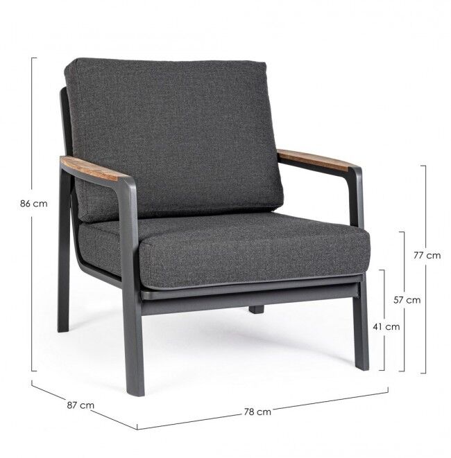 ✔ Vrhunski materijali – fotelja je izrađena od izdržljivog aluminija s praškastim premazom, što osigurava otpornost na vremenske uvjete i hrđu. Nasloni za ruke od tikovine dodaju prirodnu toplinu i estetiku.
