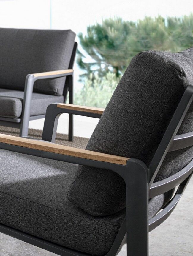 Vrtna fotelja JALISCO antracit kombinira izdržljivu aluminijsku konstrukciju, umetke od tikovine i akrilne jastuke otporne na UV zračenje . Savršeno za vrtove, terase i vanjske prostore , gdje pruža maksimalnu udobnost i eleganciju .