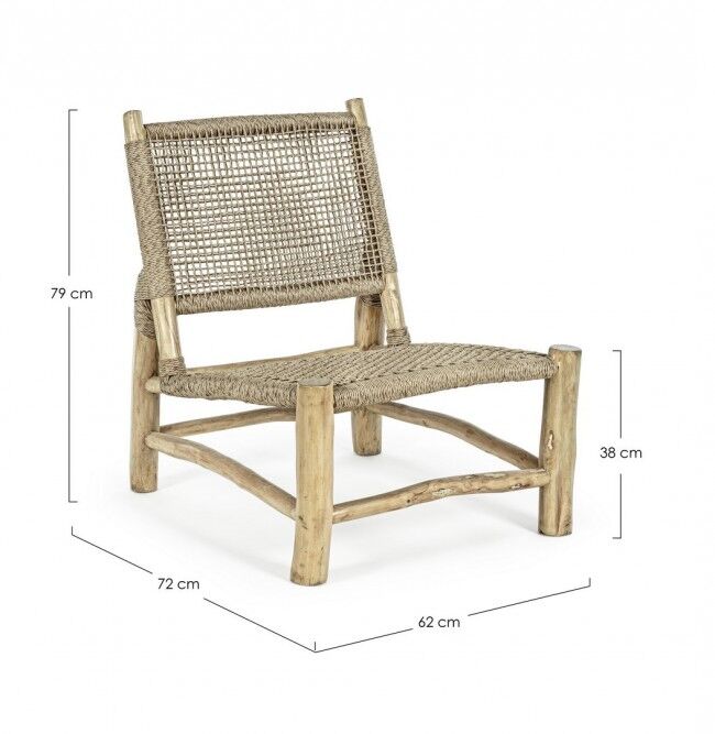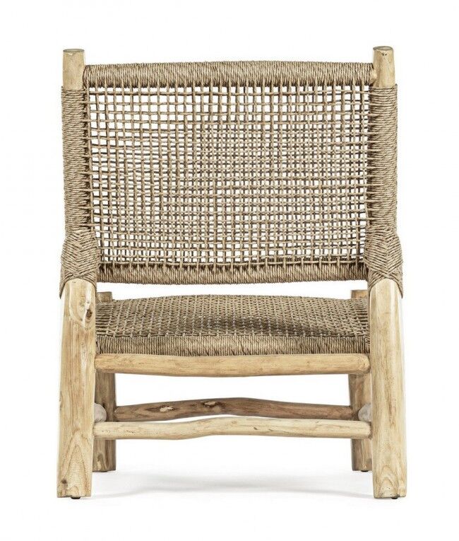 Lampok fotelja je elegantan i jedinstven komad namještaja koji kombinira prirodne i sintetičke materijale kako bi stvorio udobno i estetski privlačno sjedalo. Struktura mu je izrađena od grana tikovine, što mu daje robustan, au isto vrijeme prirodan izgled. Sjedalo i naslon za leđa tkani su sintetičkim vlaknima (VIRO) koja osiguravaju dugotrajnu izdržljivost i jednostavno održavanje. Važno je naglasiti da ova fotelja nije namijenjena za dugotrajno izlaganje izravnoj sunčevoj svjetlosti ili vremenskim prilikama jer to može utjecati na vijek trajanja materijala i izgled proizvoda. Njegov dizajn je originalan i izrađen ručno, tako da se pojedini proizvodi mogu malo razlikovati jedni od drugih. Prirodne karakteristike drva, poput pukotina i manjih nepravilnosti, pridonose jedinstvenosti svakog komada i treba ih smatrati dijelom prirodnog šarma ovog proizvoda. Fotelja Lampok pakirana je bez kartona, što može značiti dodatni oprez pri rukovanju tijekom transporta i skladištenja. Savršen je za unutarnje prostore i zasigurno će privući pažnju i dati poseban karakter vašem domu.