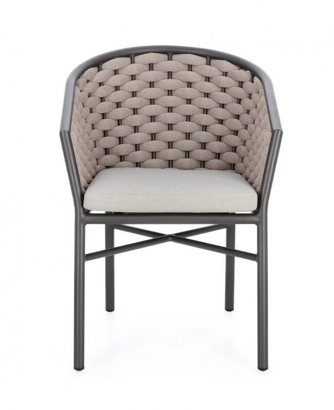 Vrtna fotelja MARGALIDA antracit/khaki elegantnog dizajna i prirodne khaki boje, koja spaja nijanse svijetlosmeđe i maslinastozelene, savršen je izbor za vanjske prostore. Izrađena je od aluminijske konstrukcije, opletena polipropilenskim užetom otpornim na vremenske uvjete. Udobnost upotpunjuju jastuci izrađeni od visokokvalitetnog tekstila. Složivi dizajn omogućuje jednostavno skladištenje, što je idealno za organizaciju prostora.