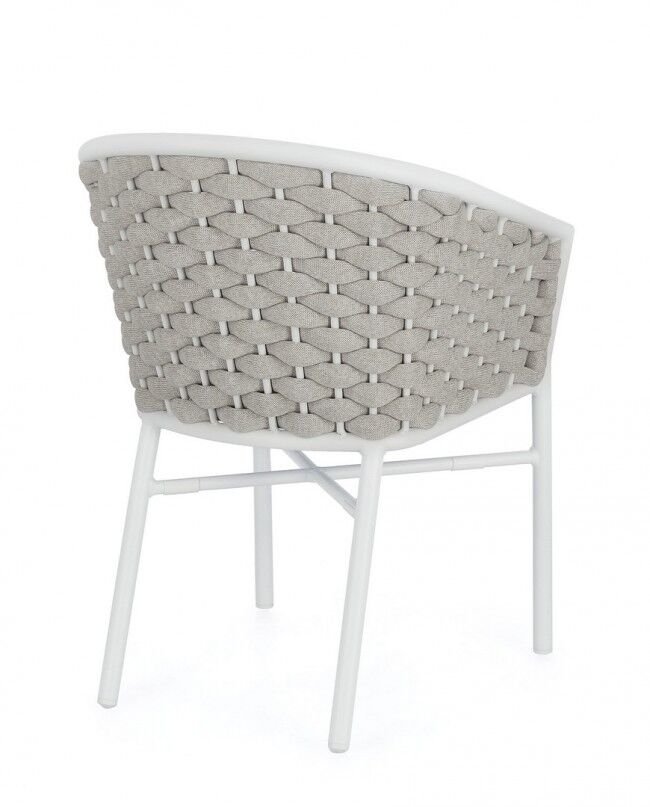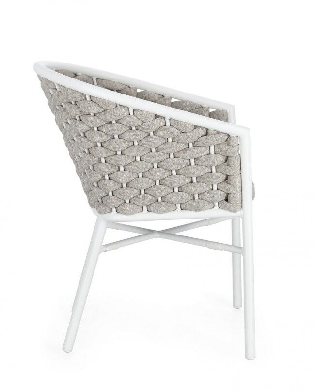 Vrtna fotelja MARGALIDA bijela - 0666082 je elegantna i praktična stolica, savršena za vanjsku upotrebu. Izrađena je od aluminijske konstrukcije, presvučene praškastim premazom koji osigurava otpornost na vremenske utjecaje i dugotrajnost. Sjedalo i naslon su pleteni polipropilenskim užetom što pridonosi modernom izgledu i dodatnoj udobnosti. Uključuje udoban jastuk izrađen od izdržljive tkanine koja se lako održava. Svojim čistim bijelim izgledom unosi svježinu i eleganciju u vrt ili terasu. Dizajn koji se može složiti omogućuje jednostavno skladištenje i uštedu prostora.