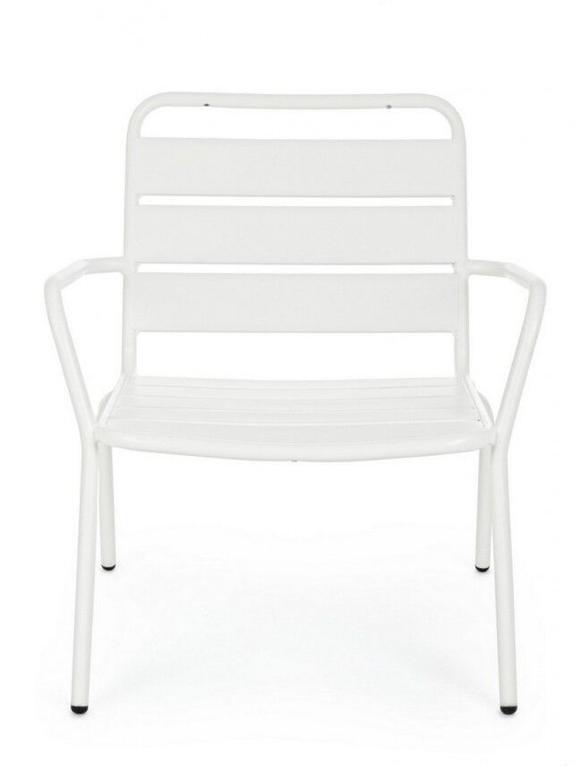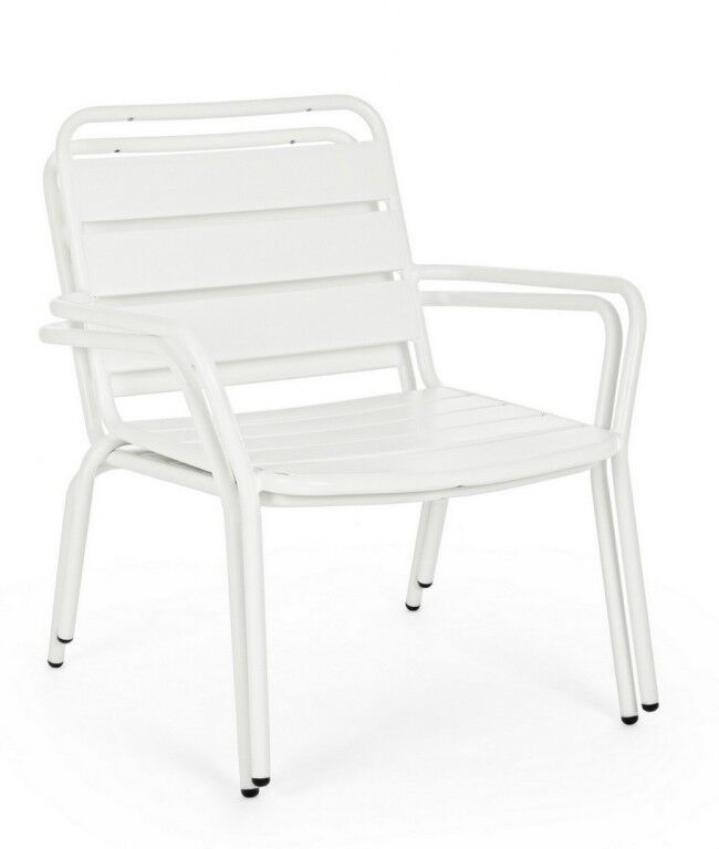 Vrtna fotelja MARLYN bijela s robusnom čeličnom konstrukcijom, mogućnošću utovara i elegantnom bijelom završnom obradom. Savršen za terase i vrtove, otporan na vremenske uvjete. Težina 7 kg.