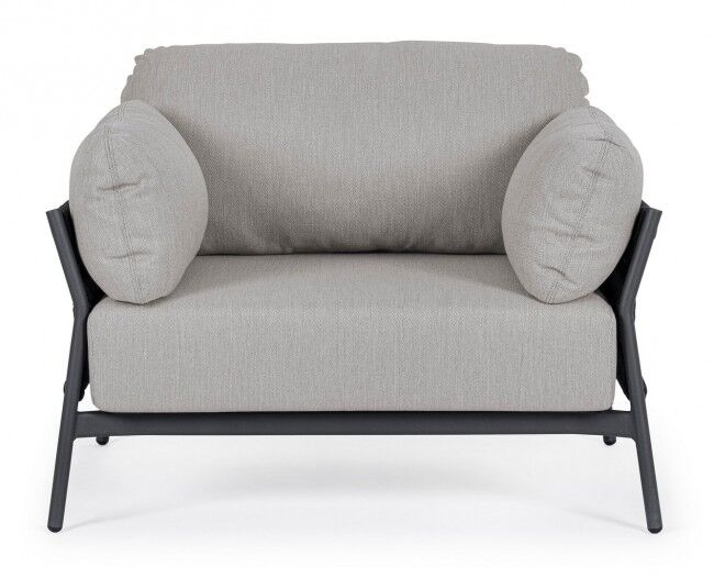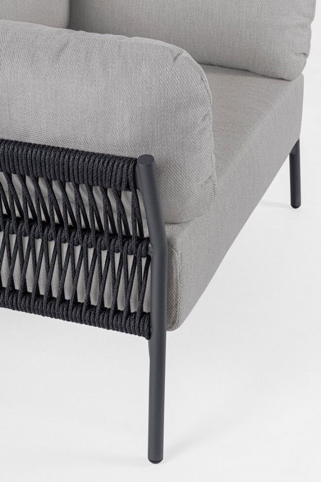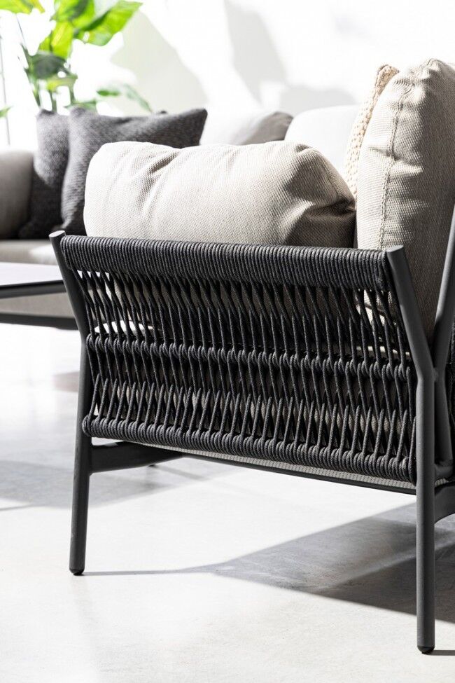 Elegantna vrtna fotelja PARDIS antracit QS22/grafit s aluminijskim okvirom, Olefin mrežom i jastucima koji se mogu skidati. Otporan na vremenske uvjete, idealan za vanjsku upotrebu. Plastični klinovi na nogama sprječavaju klizanje i štite pod.