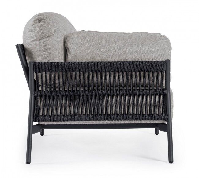 Vrtna fotelja PARDIS antracit QS22/grafit nudi savršenu kombinaciju udobnosti i elegancije za vaš vanjski prostor. Aluminijski okvir opleten olefinskim užetom i uklonjivi jastuci izrađeni od vodootporne olefinske tkanine omogućuju izdržljivost i jednostavno održavanje. Plastični klinovi na nogama štite pod i sprječavaju klizanje. Fotelja je idealna za kombiniranje s ostalim predmetima modela Pardis.
