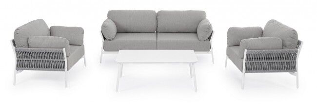 Boja bijela/grafit donosi moderan i kontrastan izgled. Svijetli bijeli okvir nadopunjen je grafitnim jastucima i isprepletanjem, stvarajući elegantnu kombinaciju koja se savršeno uklapa u različita vanjska okruženja.