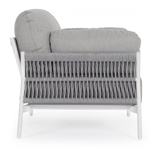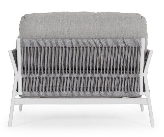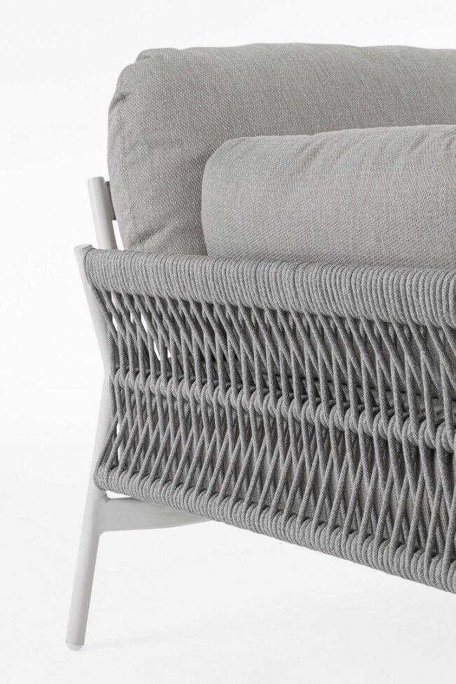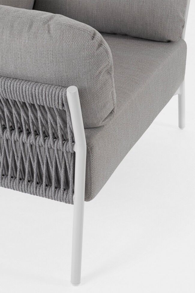 Vrtna fotelja PARDIS bijela QS20/graphite elegantan je komad vanjskog namještaja koji spaja modernost i funkcionalnost. Aluminijski okvir, pleten užetom od olefina, i uklonjivi jastuci od vodootporne olefin tkanine osiguravaju dugotrajnu upotrebu i jednostavno održavanje. Plastični čepovi na nogama štite pod i sprječavaju klizanje. Fotelja se savršeno kombinira s ostalim elementima modela Pardis kako bi stvorila skladan vanjski prostor.