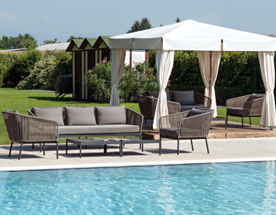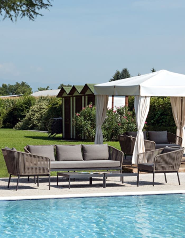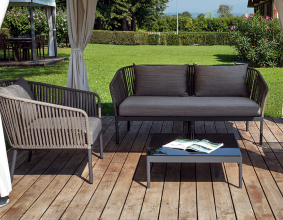 Elegantan set, izgrađen na čvrstom aluminijskom okviru, obojan poliesterskim prahom. Leđa isprepletena sintetičkim užetom. Jastuci su izrađeni od 100% poliesterske tkanine, vodoodbojni, uklonjivi i perivi. Garnitura za dnevni boravak Bergen koja vam omogućuje opremanje i malih i velikih vanjskih prostora. Set je pogodan za terasu, balkon, bazen i vrt. Otporan je na sve vremenske uvjete. Međutim, preporuča se da ga ne izlažete jakom sunčevom svjetlu jer to produljuje njegov životni vijek.