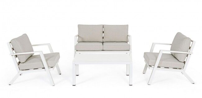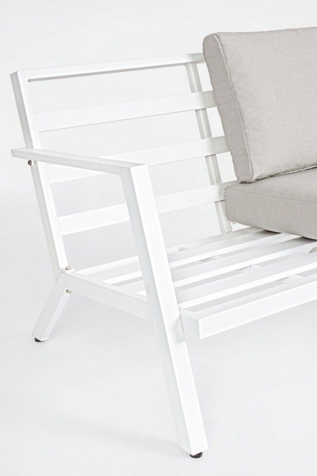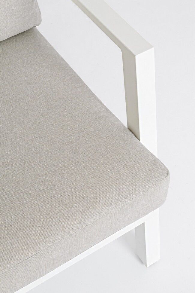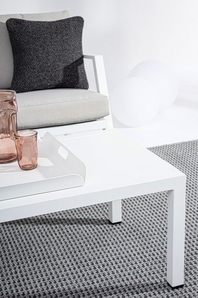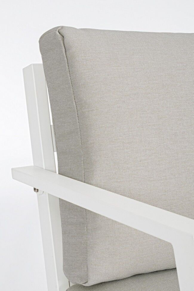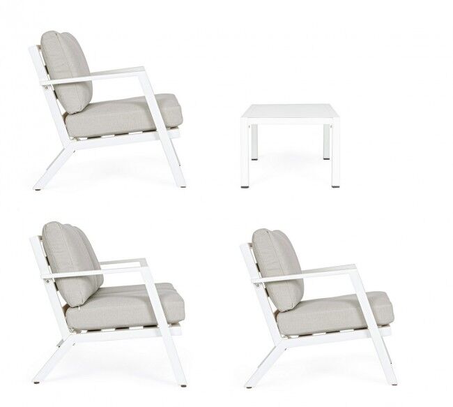 Vrtna garnitura SET4 HARLEY bijela YK11 je moderna vanjska garnitura za 4 osobe , izrađena od aluminija obloženog prahom i uklonjivim jastucima od hidrofobne olefinske tkanine. S podesivim nogama i vijcima od nehrđajućeg čelika, idealan je za opuštanje na otvorenom, s dugim vijekom trajanja i otpornošću na vremenske utjecaje.