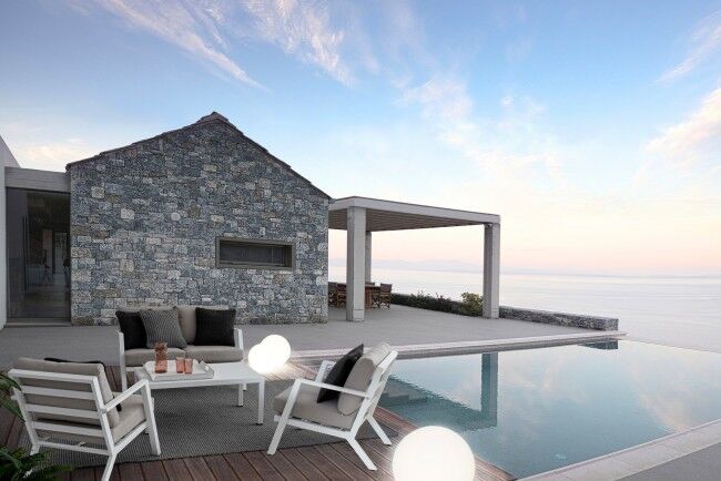 - Odvojivi jastuci od olefinske tkanine : Set je opremljen udobnim uklonjivim jastucima od hidrofobne olefinske tkanine (100% polipropilen). Ova tkanina je otporna na vodu i UV zrake, što osigurava dug život.