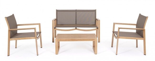 - Stil : Set je dizajniran u prirodnoj paleti boja , što daje elegantan i jednostavan izgled. Kombinacija prirodne Textilene tkanine i aluminijske konstrukcije doprinosi modernom stilu prikladnom za različite vanjske prostore.