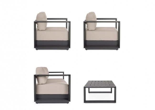 Moderni vrtni namještaj SET4 MOSES antracit YK15 elegantne tamno sive boje s aluminijskom konstrukcijom i vodoodbojnim jastucima. Savršeno rješenje za moderan vanjski prostor.