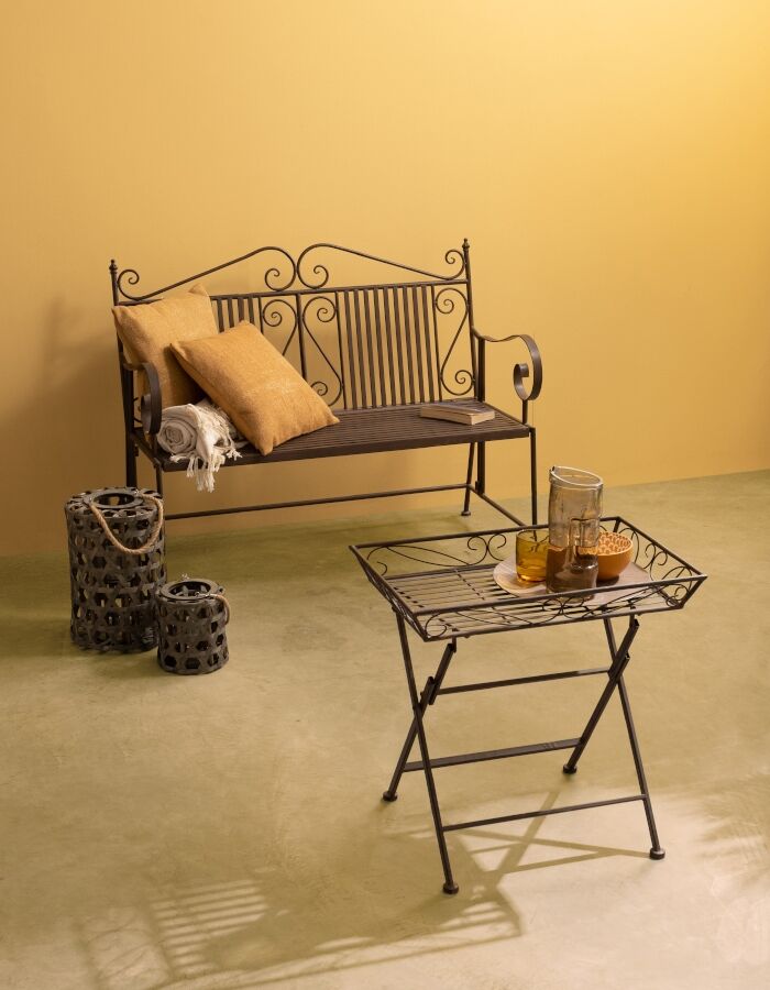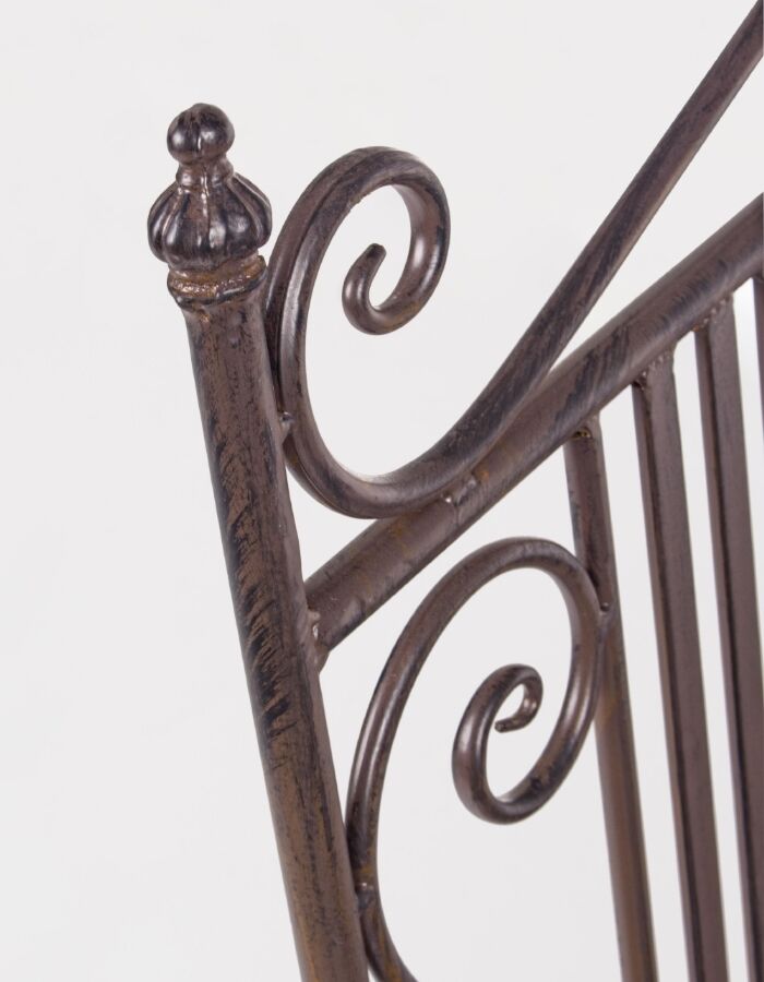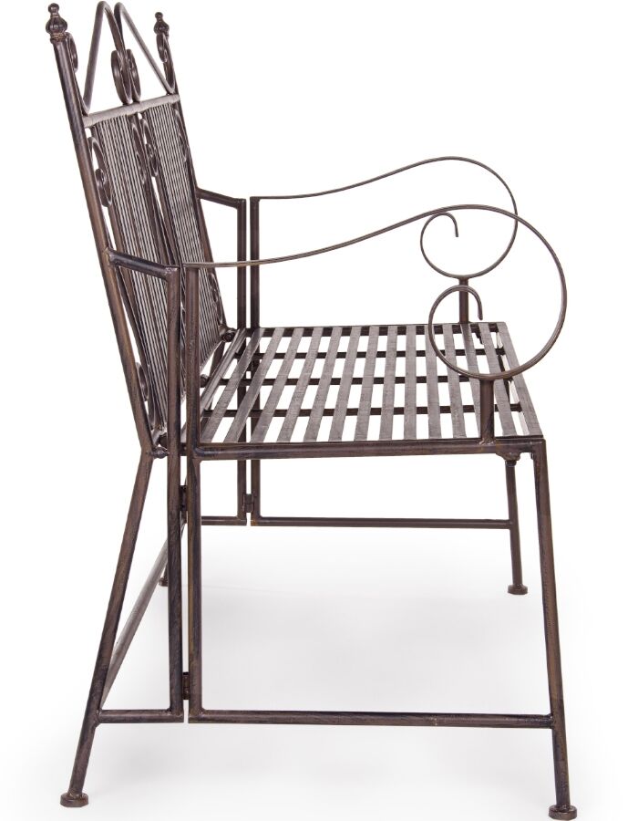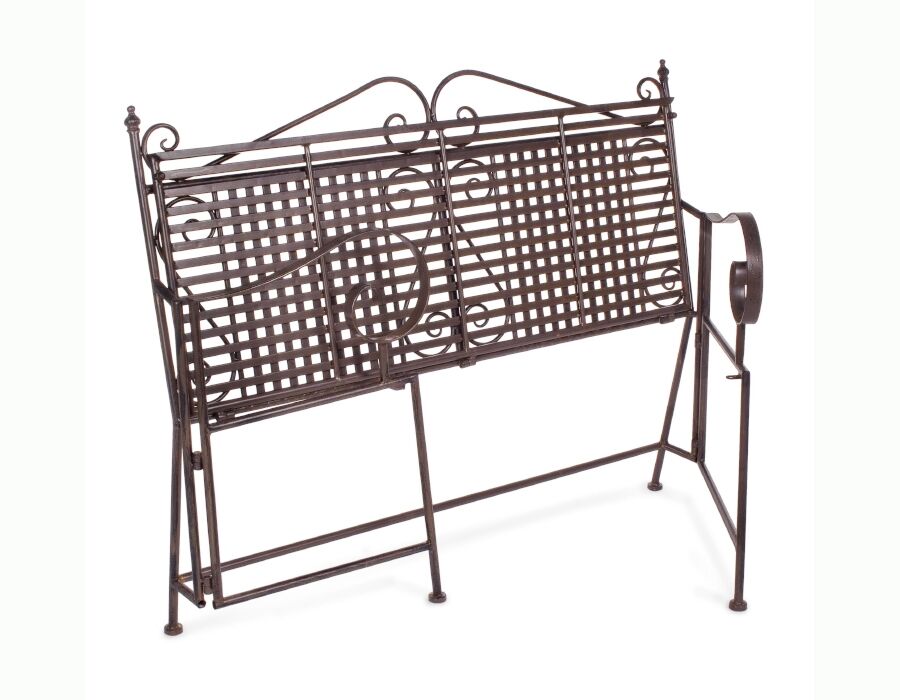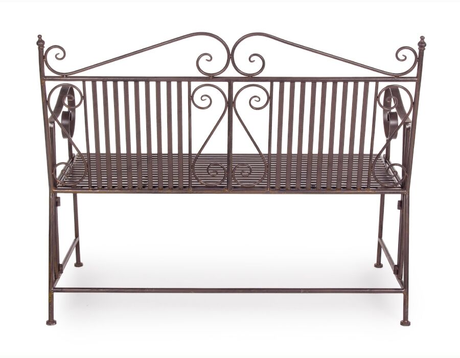 Metalna klupa obojana epoksi bojom u prahu za vanjsku upotrebu. Klupa je sklopiva i zauzima vrlo malo prostora. Stoga je pogodan za terase, balkone, hodnike i čekaonice. Otporan je na sve vremenske uvjete. Klupu treba sastaviti.