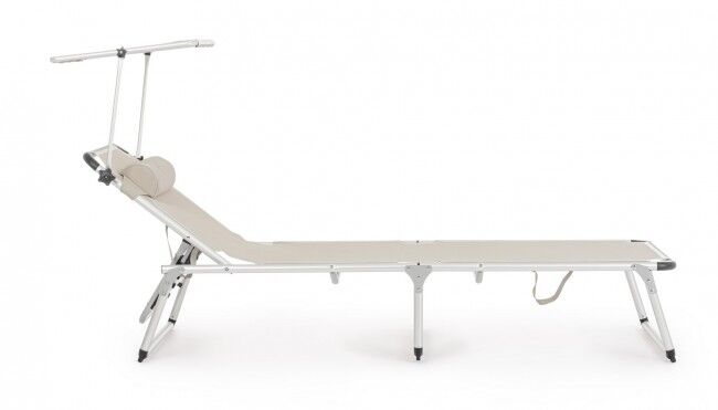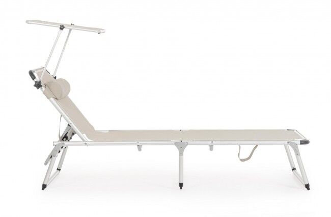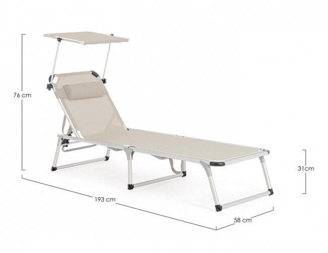 Vrtna sklopiva ležaljka za plažu CAYO svijetlo siva je lagana aluminijska ležaljka s tekstilnom podstavom otporna na vremenske uvjete. Podesivi naslon za glavu i sjenilo, sklopivi dizajn. Dimenzije: 58x193x76 cm. Visina sjedala: 31 cm. Težina: 4,3 kg. Minimalna narudžba: 4 komada.