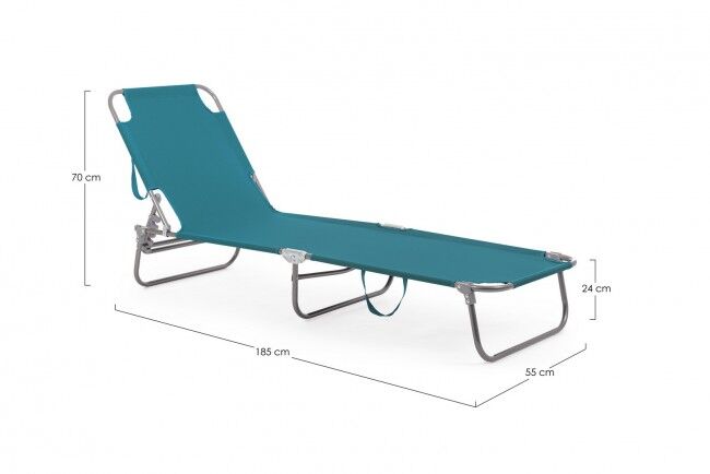 Sklopiva vrtna ležaljka za plažu ORISTANO TURCHESE dizajnirana je za opuštanje i udobnost na otvorenom. Zahvaljujući mehanizmu za sklapanje i četiri podesive pozicije, ova ležaljka je idealna za korištenje na plaži, u vrtu ili uz bazen. Njegova robusna konstrukcija osigurava dugotrajnu upotrebu i jednostavan je za nošenje i skladištenje.