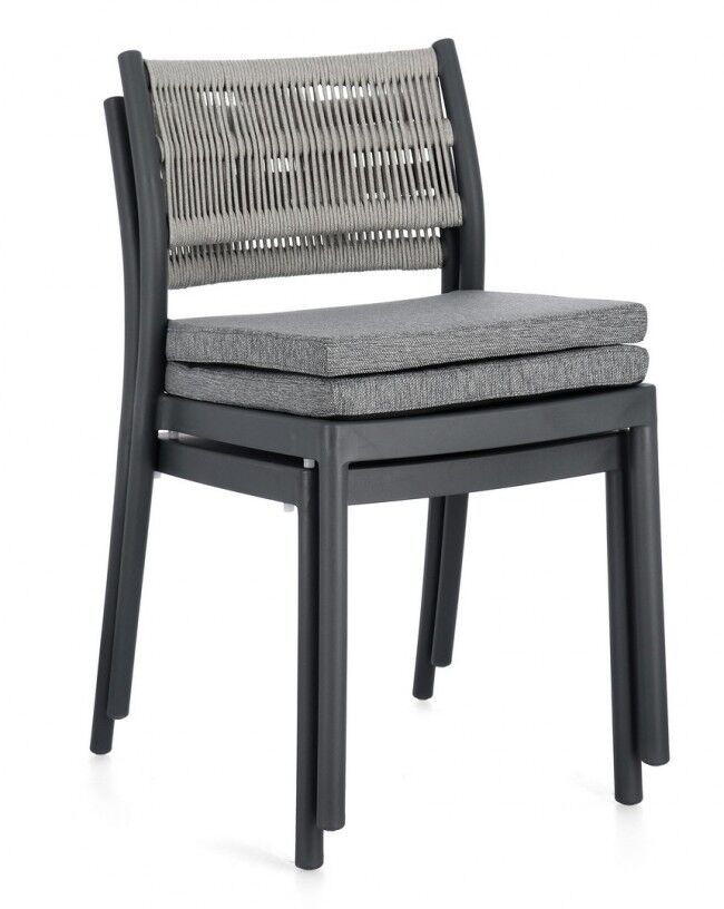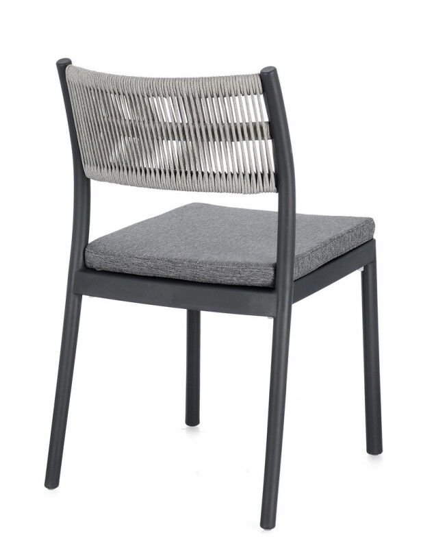 Vrtna stolica ALVIN antracit/svijetlo siva s polipropilenskom strukturom otpornom na UV zrake, naslonom od pletenog poliesterskog užeta i odvojivim vodootpornim jastukom. Praktična, sklopiva stolica za udobno korištenje na otvorenom.