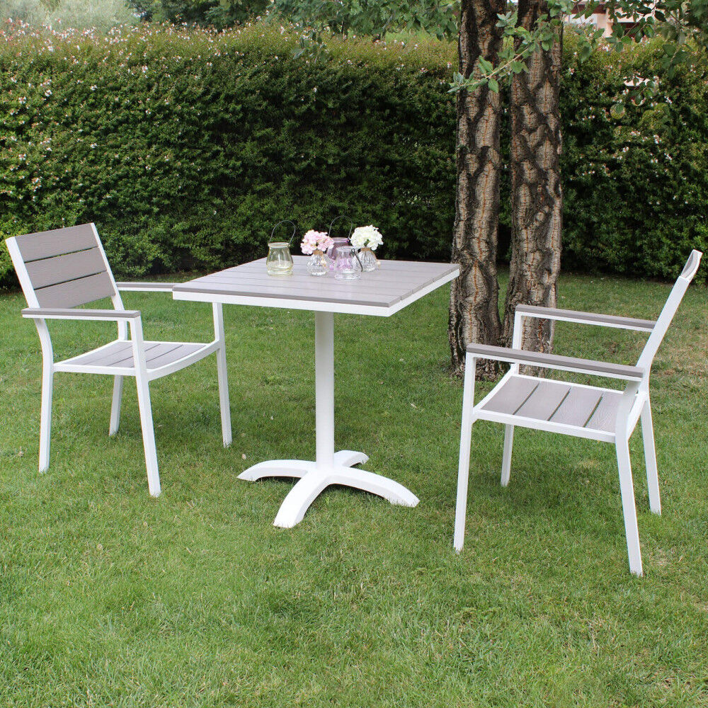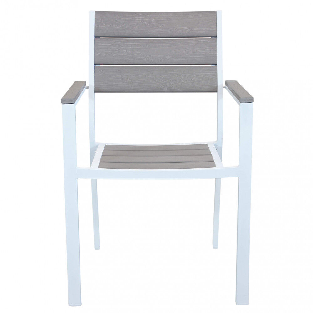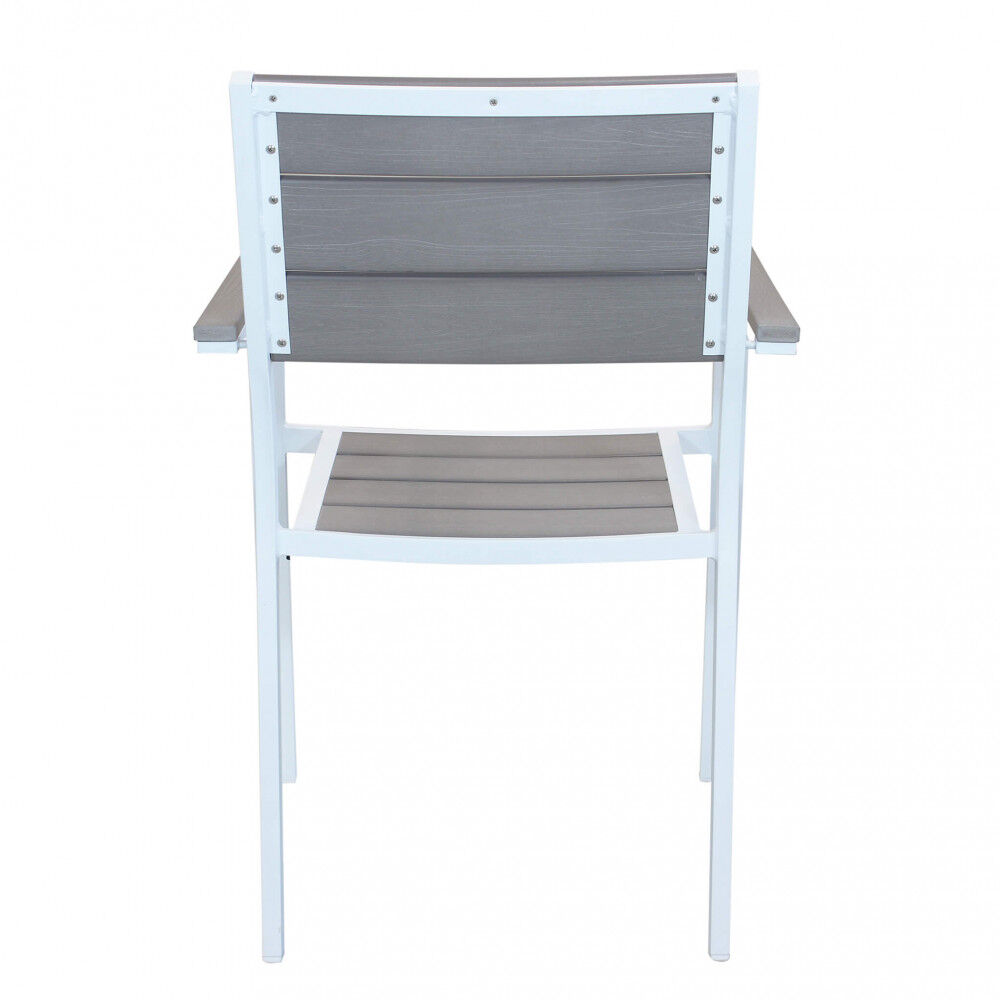 Struktura u BIJELOJ, TAUPE ili TAUPE ili ANTRACIT boji aluminiju, naslon i sjedalo sa sivim POLYWOOD letvicama Dimenzije: 58 x 58 x 89 h cm