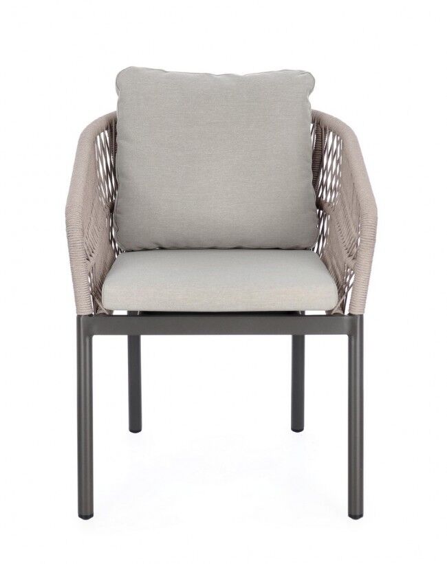 Vrtna stolica GALDANA savršen je izbor za vaš vanjski prostor, dizajnirana za eleganciju i udobnost. Njegova aluminijska konstrukcija izuzetno je izdržljiva i isprepletena poliesterskim užetom, osiguravajući dug život i otpornost na vremenske uvjete. Stolica uključuje uklonjive jastuke izrađene od 100% vodootpornog poliestera, što omogućuje jednostavno čišćenje i održavanje. Sklopivi dizajn olakšava spremanje kada vam ne treba.