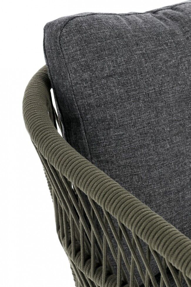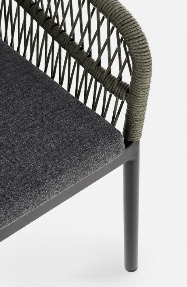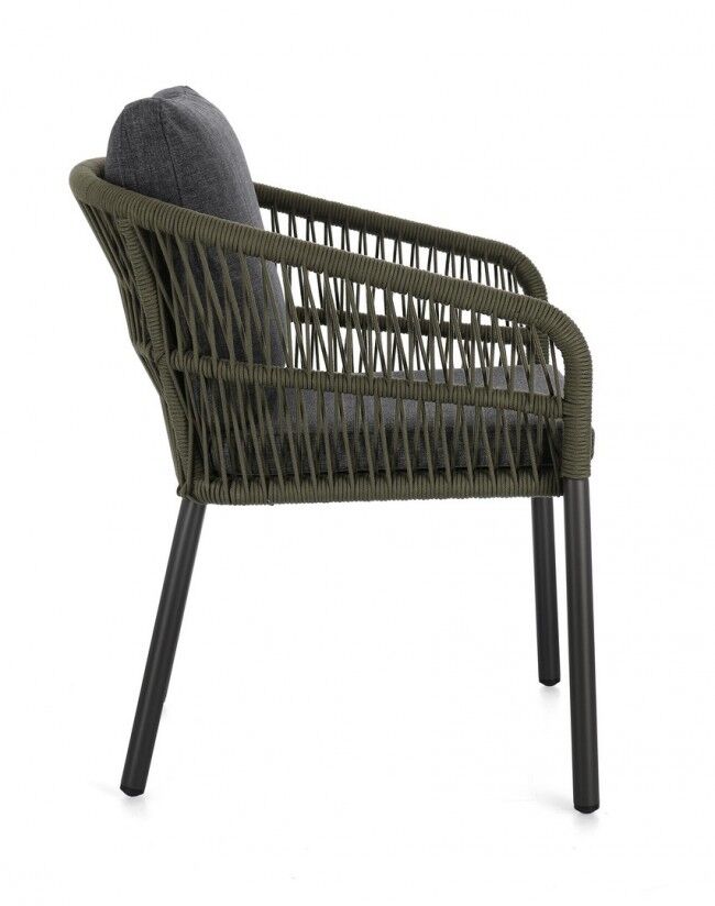 Opis : Vrtna stolica GALDANA antracit/zelena je elegantna i funkcionalna stolica dizajnirana za vanjsku upotrebu. Njegova aluminijska konstrukcija, opletena olefinskim užetom i opremljena vodoodbojnim polipropilenskim jastucima, omogućuje visoku izdržljivost i udobnost u svim vremenskim uvjetima. Moderan dizajn i robusna struktura stolice uljepšat će svaki vanjski prostor.