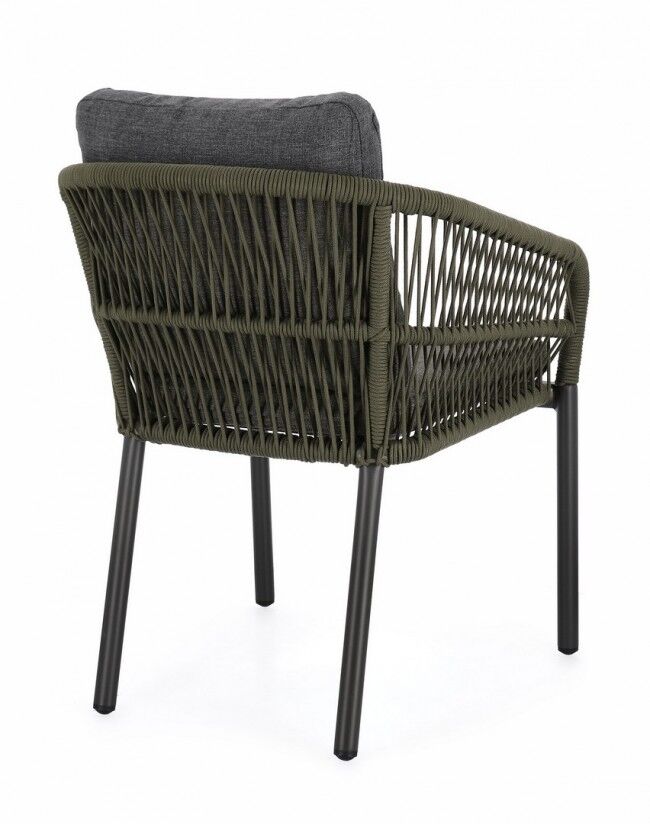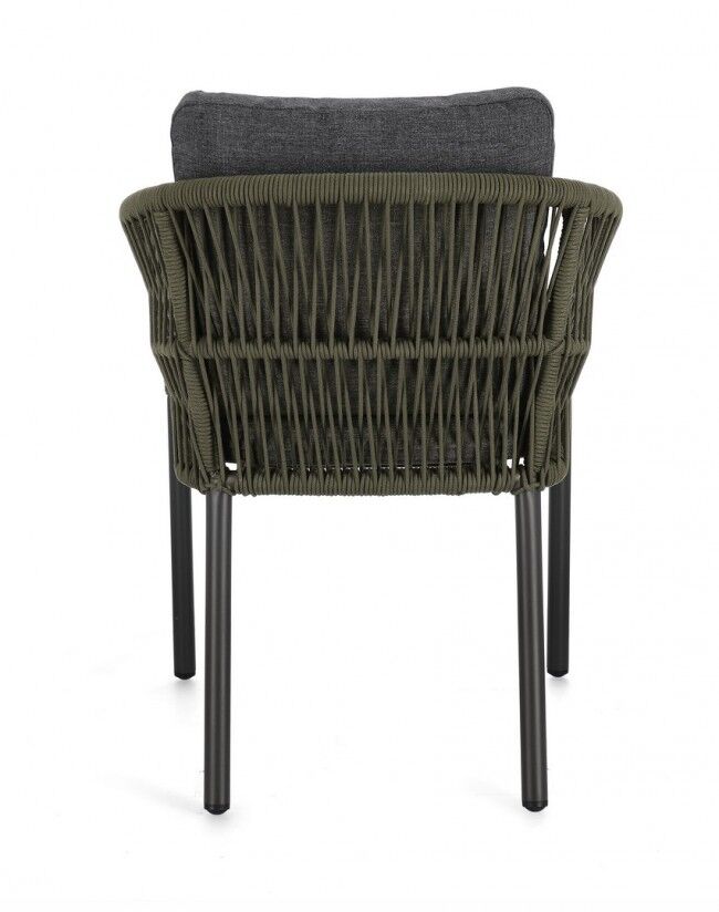 Vrtna stolica GALDANA antracit/zelena je elegantna i funkcionalna stolica dizajnirana za vanjsku upotrebu . Njegova aluminijska konstrukcija, opletena olefinskim užetom , osigurava visoku otpornost na vremenske uvjete i UV zrake. Vodoodbojni polipropilenski jastuci pružaju dodatnu udobnost i lako se održavaju. Moderan dizajn i robusna struktura stolice uljepšat će svaki vanjski prostor.