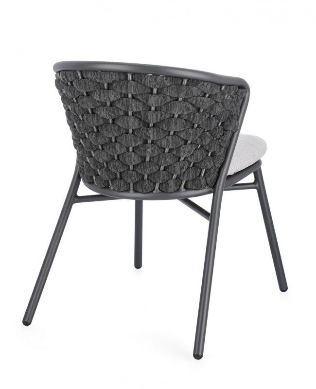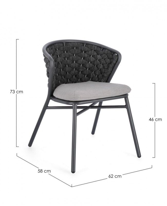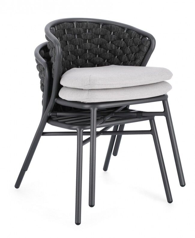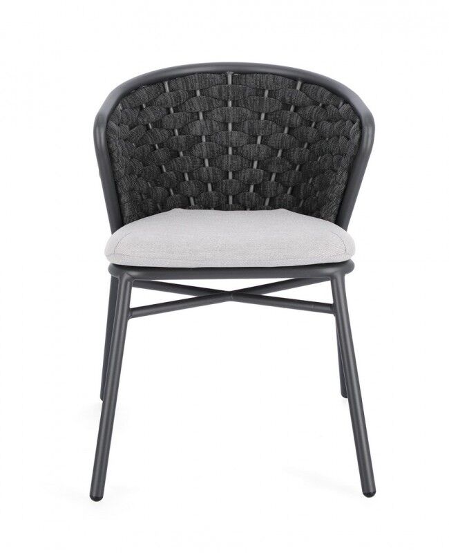 Vrtna stolica HARLOW antracit/grafit QS22 s aluminijskom konstrukcijom i pletenim Textilene naslonom. Podstavljeni jastuk sjedala za udobno sjedenje. Sklopiv i idealan za terase i vrtove. Marka Bizzotto Homemotion. Minimalna narudžba 4 komada.