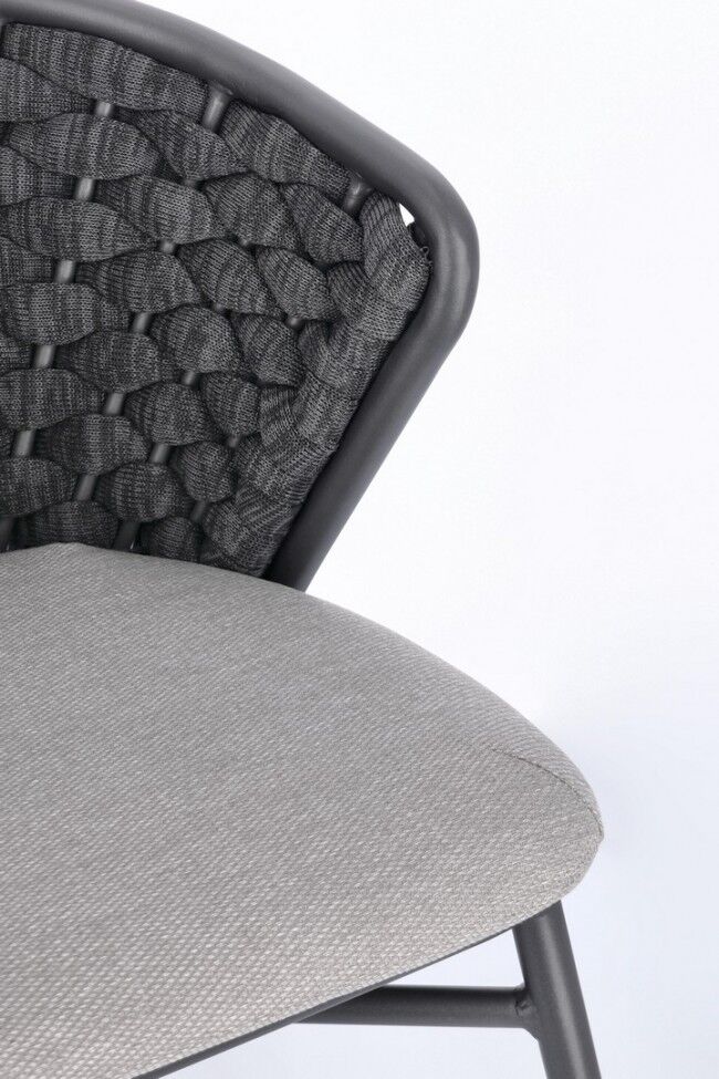 - Pleteni tekstil od užeta Textilene : Naslon i sjedalo stolca pleteni su užetom Textilene koje sadrži nitritnu gumu. Ovaj materijal je otporan na vremenske utjecaje, UV zrake i pruža udobno sjedenje i ventilaciju.