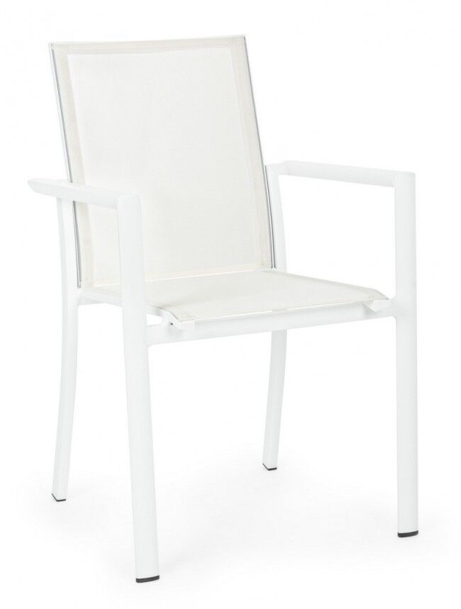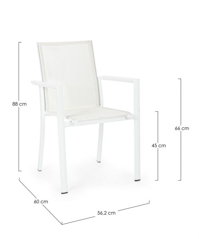 Vrtna stolica KONNOR bijele boje elegantan je i funkcionalan dodatak za vaš vanjski prostor. Konstrukcija stolice izrađena je od aluminija, premazanog poliesterskim prahom, što osigurava trajnost i otpornost na vremenske uvjete. Sjedalo i naslon izrađeni su od izdržljivog textilene 1x1 materijala, koji pruža udobnost. Stolica je dizajnirana tako da se može slagati jedna na drugu, što omogućava jednostavno skladištenje i uštedu prostora.