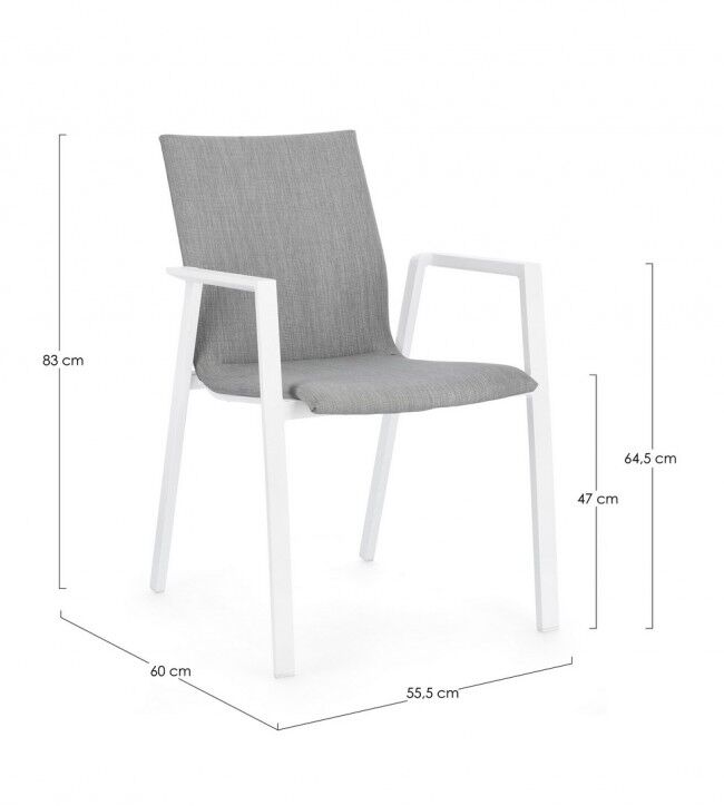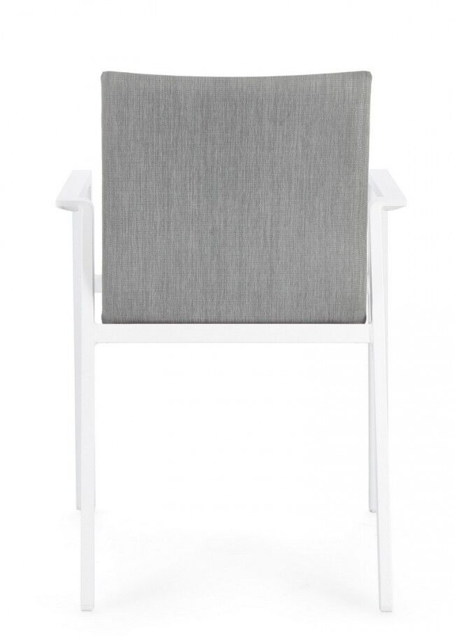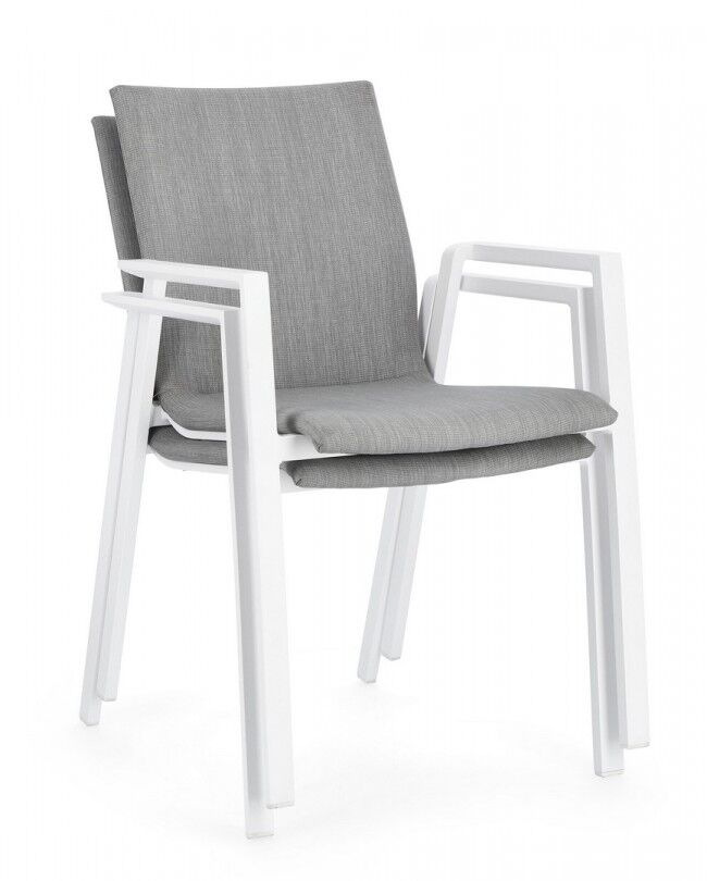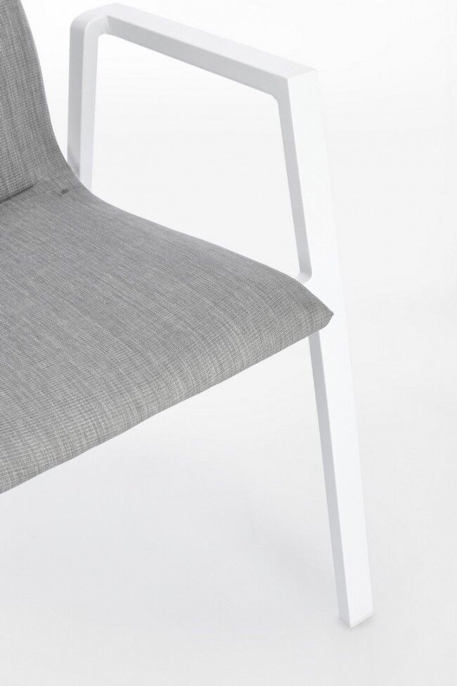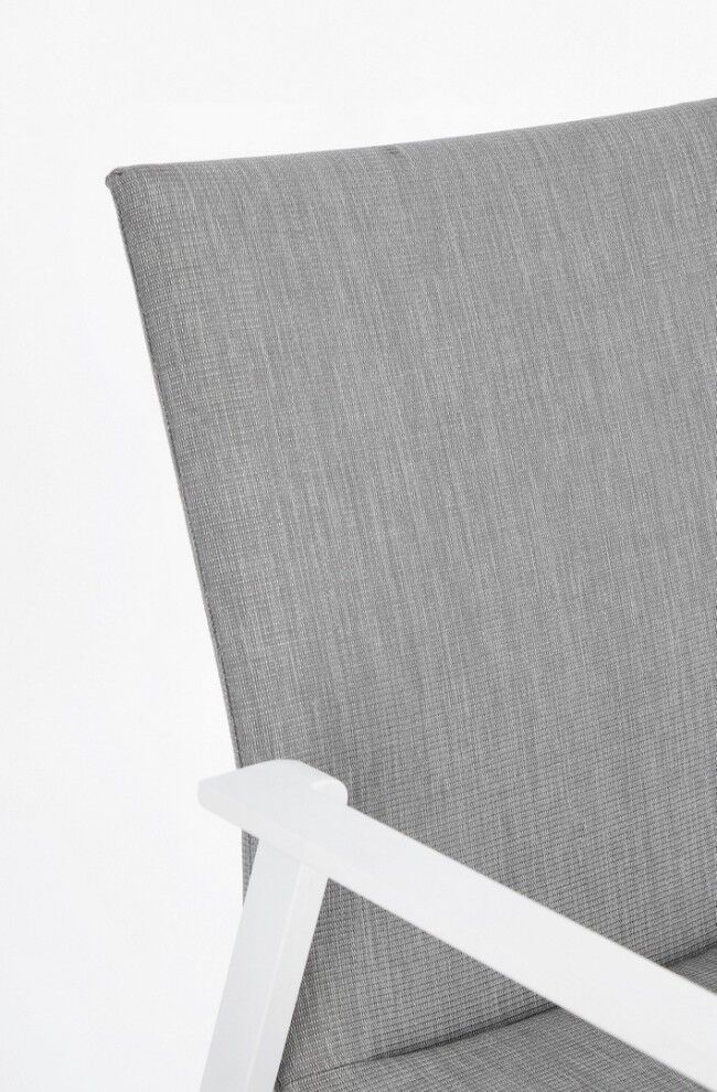 - Stil : Stolica je dizajnirana u suvremenom stilu s bijelom aluminijskom konstrukcijom i sivom tkaninom , što joj daje elegantan i moderan izgled, pogodan za razne vanjske prostore.