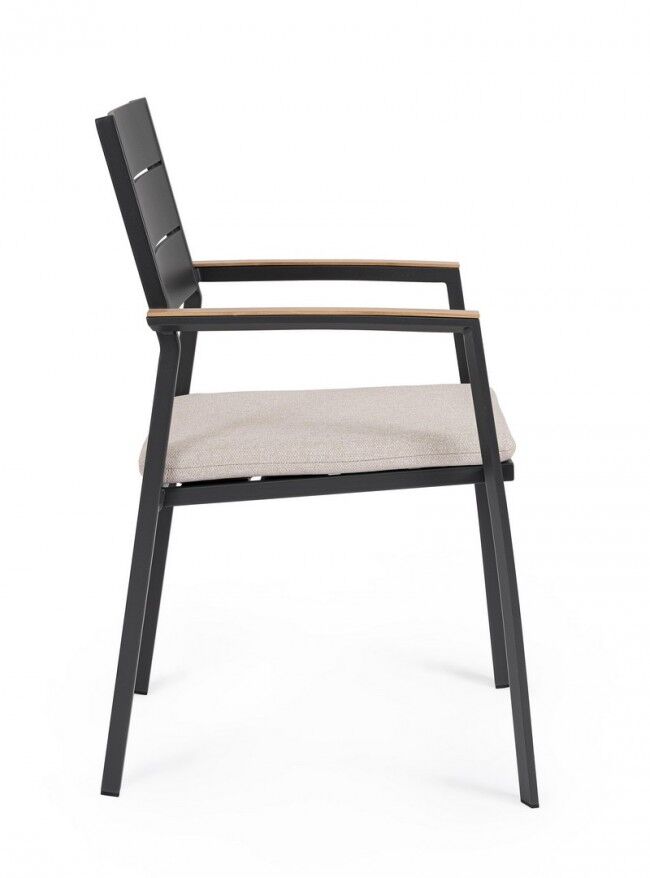 Elegantna vrtna stolica ZELMAR u antracit boji s naslonima i jastukom od Olefina. Stabilna aluminijska konstrukcija, naslagiva. Minimalna narudžba 20 kom.