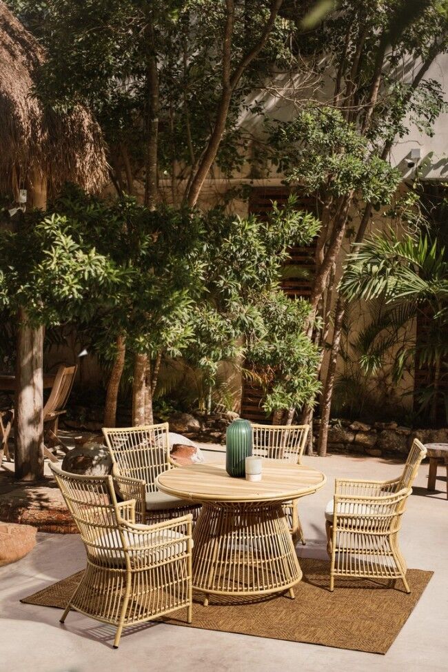 - Materijal : Površina izrađena od certificiranog tikovine, pletena sintetičkim vlaknima.